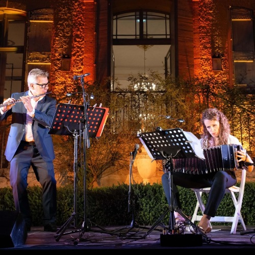 Afficher le planLa bandonéoniste Carmela Delgado et le flûtiste Franck Masquelier proposent un voyage-hommage élaboré autour de Carlos Gardel et Astor Piazzolla, deux figures majeures du libre tango. Enlaçant extraits d’interviews, anecdotes, souvenirs de jeunesse et œuvres musicales de ces deux artistes, le duo nous plonge dans la grande histoire de cette musique prompte à faire danser les couples et les larmes. Quoi de mieux que d’allier l’élégance suave de la flûte à l’émotion radicale du bandonéon pour raconter, à hauteur d’intime, la révolution musicale insufflée par Astor Piazzolla.